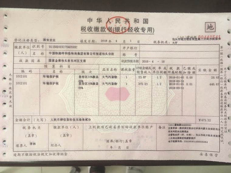 据了解,中国铁路呼和浩特局集团有限公司恒诺包头分段在专业人员的指导下,辅助税务人员从企业合适的计税依据开始,根据行业、原料、工艺和规模找到并计算出产排污系数填入计税系统,填报成功后开出首张税票。
