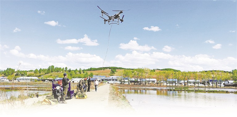 在复兴镇六间房村,一场“空中作业”同样精彩。种植户王志刚操控着无人机,轻松吊起150斤的秧苗运输袋,快速运送到百米外的水田。“连续两年用无人机运苗,还能施肥、喷药,以前10人干的活,现在2小时就能完成!”王志刚说,无人机不仅大大提升了自家的生产效率,农闲时还能为周边农户服务,增加收入。