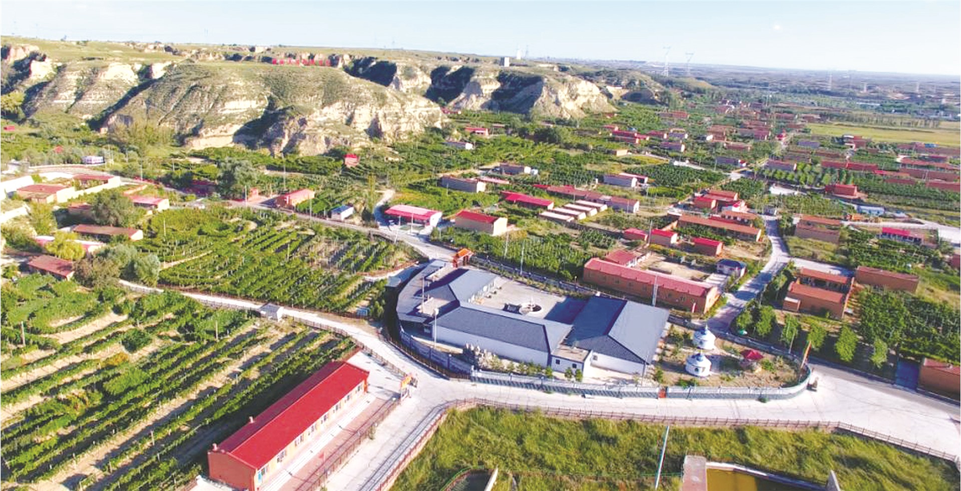 这里背山面水、风光旖旎,满山遍野的葡萄架与沟壑纵横的独特地貌相映成景,身穿红马甲的志愿者正在引导游客观光游玩,新时代文明实践站里非遗课堂传来阵阵的欢声笑语,处处呈现出生态美、产业兴、乡风淳的美丽画卷。