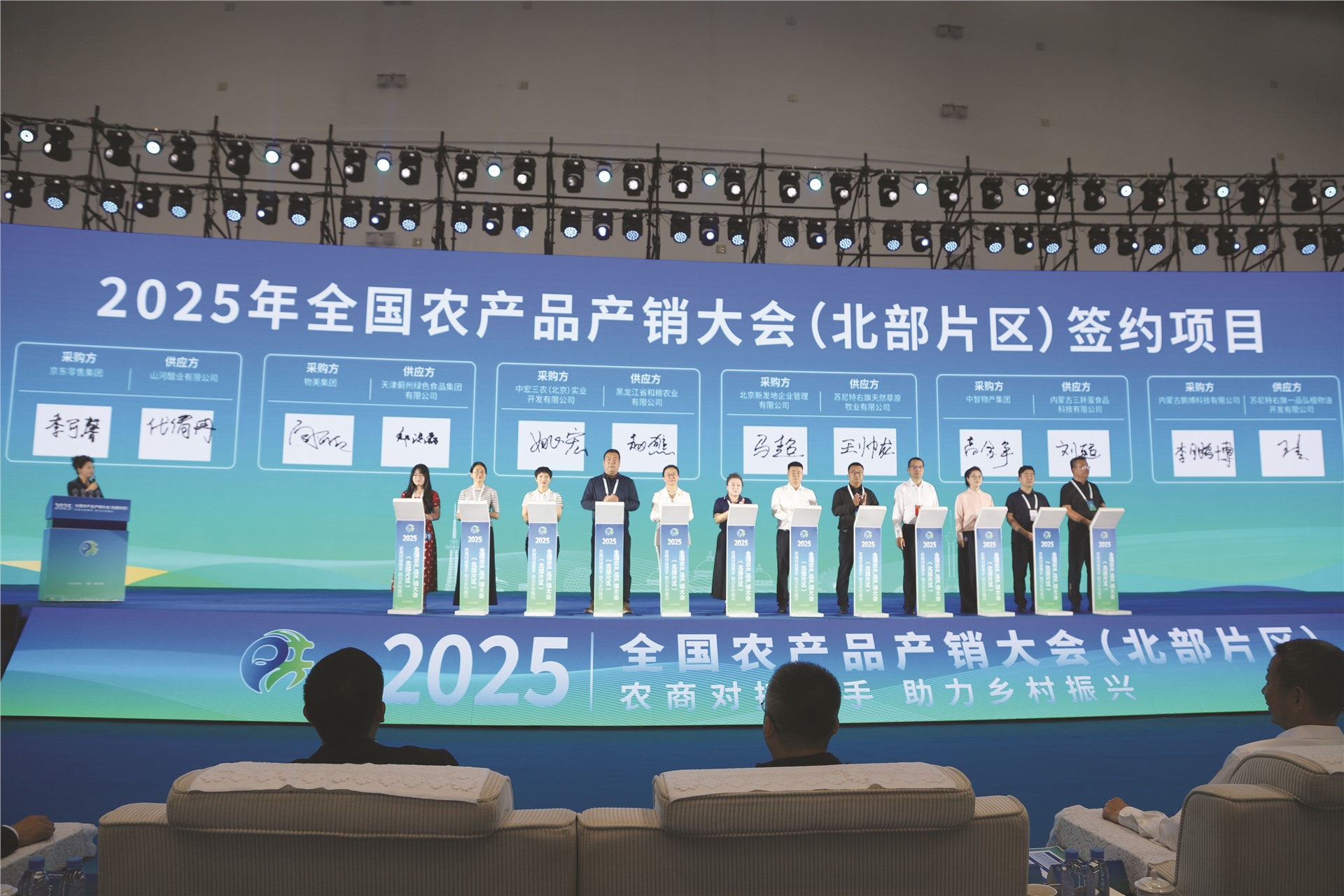 9月5日,2025年全国农产品产销大会(北部片区)在内蒙古自治区呼和浩特市敕勒川国际会展中心举办,来自北京、天津、河北、山西、内蒙古、辽宁、吉林、黑龙江北部“五省两市一区”大型商贸流通企业、生产加工企业和各类采购商共赴这场 “农产品大集”, 开幕式现场签约12个项目,签约金额20亿元。