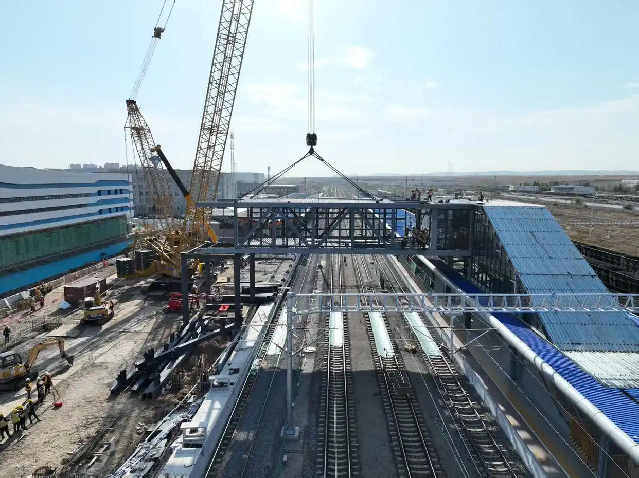本次天桥吊装顺利完成,为锡林浩特站站房第二阶段建设按下了加速键,投用后将彻底解决旅客跨线换乘“绕路、耗时”的痛点,实现“站内快速通行”。
