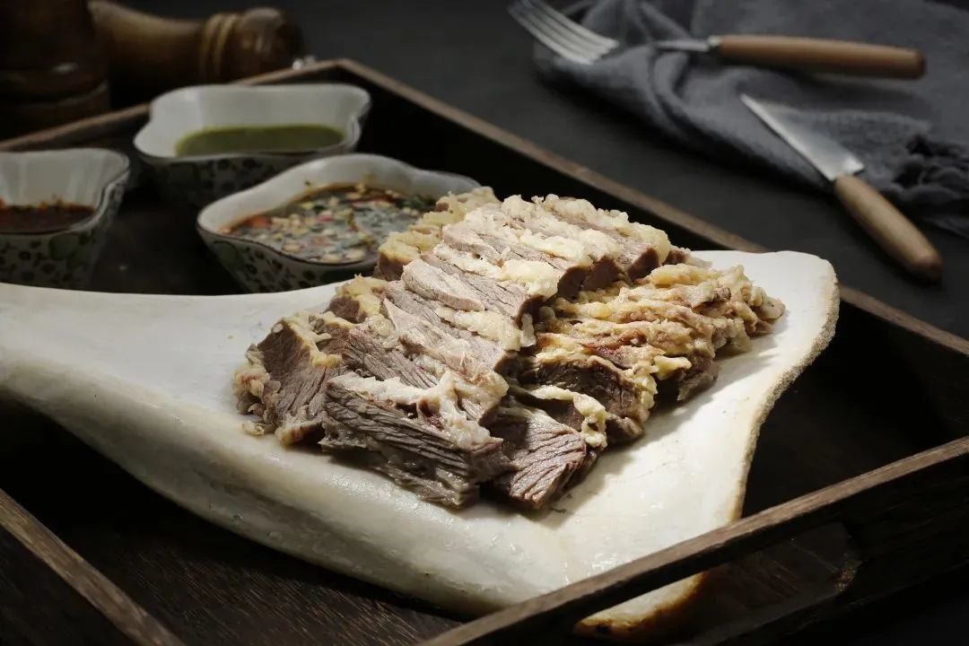 苏白牛的肋条肉,天生带着“优等生”的特征:高蛋白、低脂肪,肌理间藏着草原的营养与丰韵。不像圈养牛那般肥腻,也没有复杂的腥气,每一寸肉质都透着自然生长的紧实与细腻。这大概就是草原对食材最慷慨的馈赠——无需刻意雕琢,本味就已足够动人。