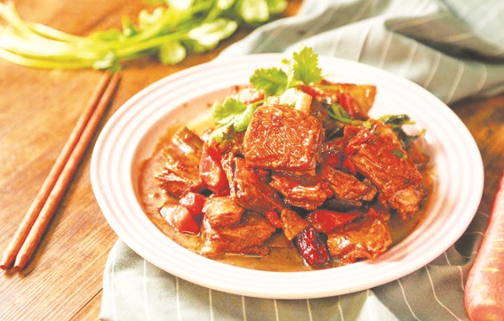 在当地,羊肉最受欢迎的做法是红焖羊肉。浓油赤酱包裹着肉块,软烂入味,连汤汁都是下饭的神器。就着辣椒大口吃下,浑身冒汗,畅快淋漓。