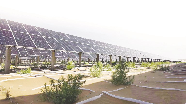 “引进企业不是简单‘招商引资’,而是要精准选准‘生态+产业’的契合点。”阿拉善左旗发展改革委主任叶涛表示,“我们坚持生态优先、绿色发展,在项目引进时严格把关,优先选择能带动治沙、促进就业的企业。同时,通过政策扶持、基础设施配套等举措,推动企业形成‘板上发电、板间种植、板下修复’的协同模式,让荒漠不仅能变绿洲,还能变‘粮仓’。”据悉,内蒙古华电腾格里基地全部投产后,将完成治沙近22万亩,每年向江西等中东部地区输送绿电约400亿千瓦时,预计拉动上下游产业投资约1200亿元。