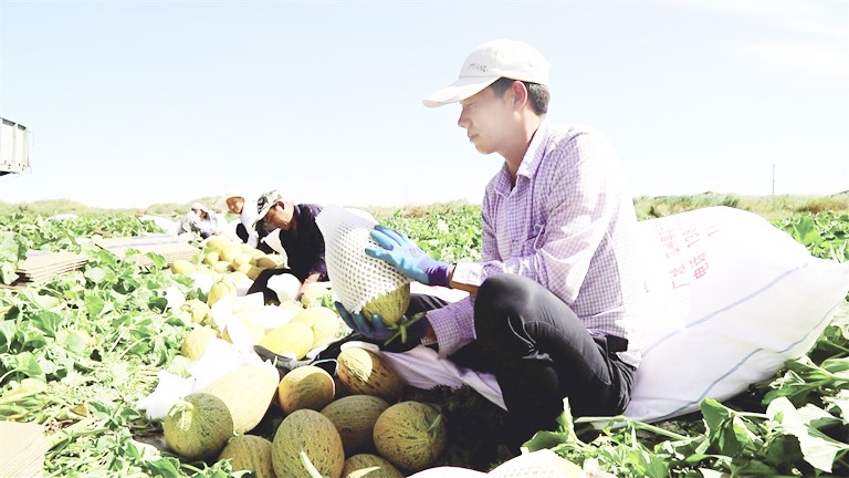 金秋时节,当北疆大地迎来初秋的凉意,阿拉善盟额济纳旗的蜜瓜已香飘万里。在该旗巴彦陶来苏木的瓜田里,工人们小心翼翼地将成熟的蜜瓜采摘、分拣、包装。这些带着大漠温度的甜蜜果实,将踏上前往东南亚的旅程。“这里水土好、瓜质优,我们的蜜瓜卖到了越南。”有着20年种植经验的瓜农杨勇承包了100多亩地,专门种植优质蜜瓜。