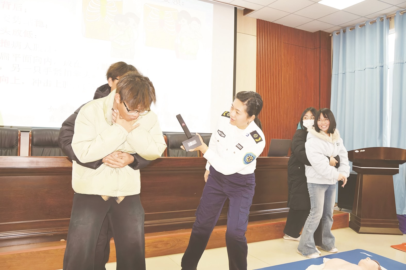 “以前只在电视上见过心肺复苏,今天亲手操作才知道,按压深度、频率都有严格要求,专业指导太重要了。”参与现场学习的师生们连连感慨,收获颇丰。(苗雨蔚)