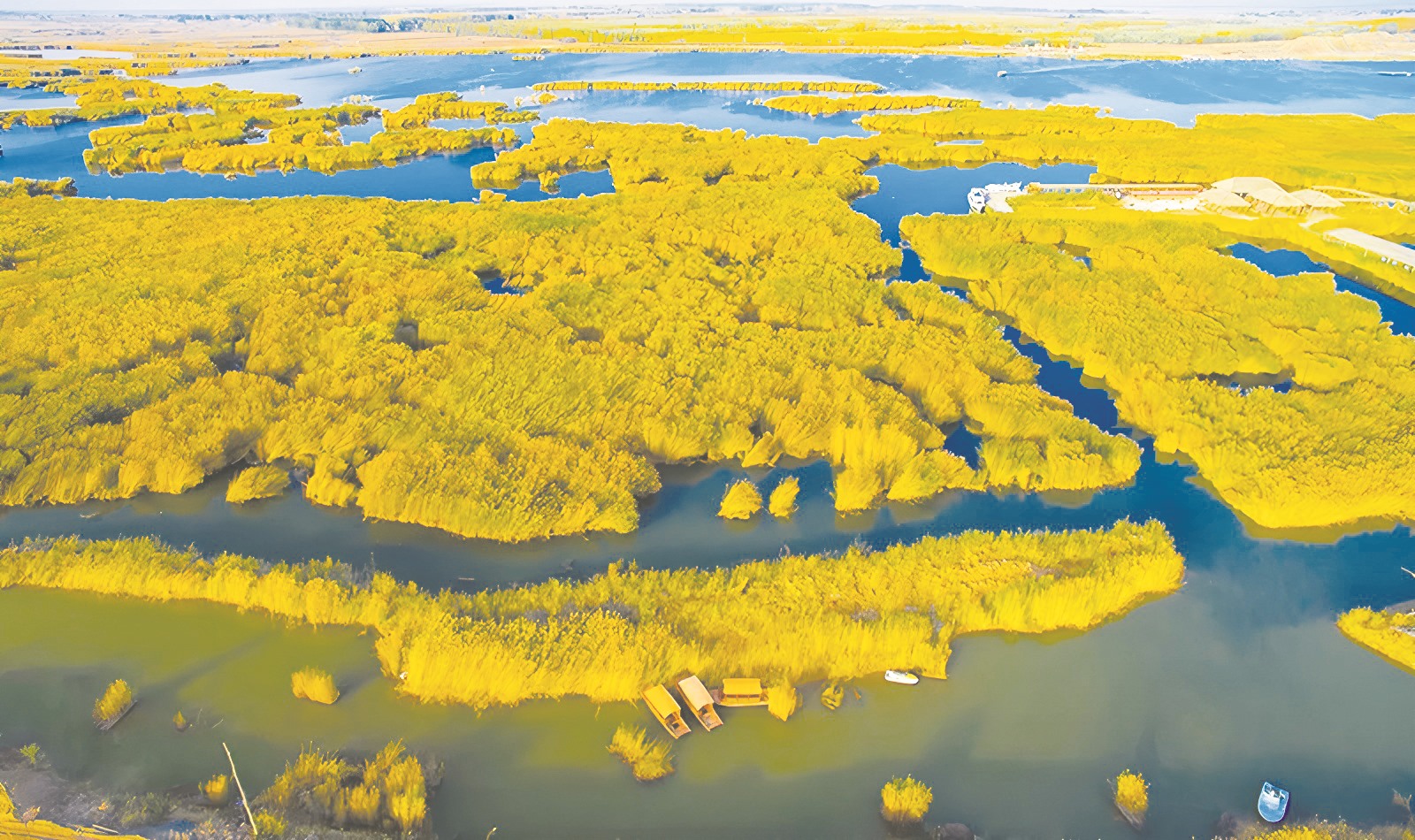 在磴口县的52公里境内,舒广袖,舞长裙,为乌兰布和沙漠泼洒出160多个湖泊,造就了名副其实的“百湖之乡”。