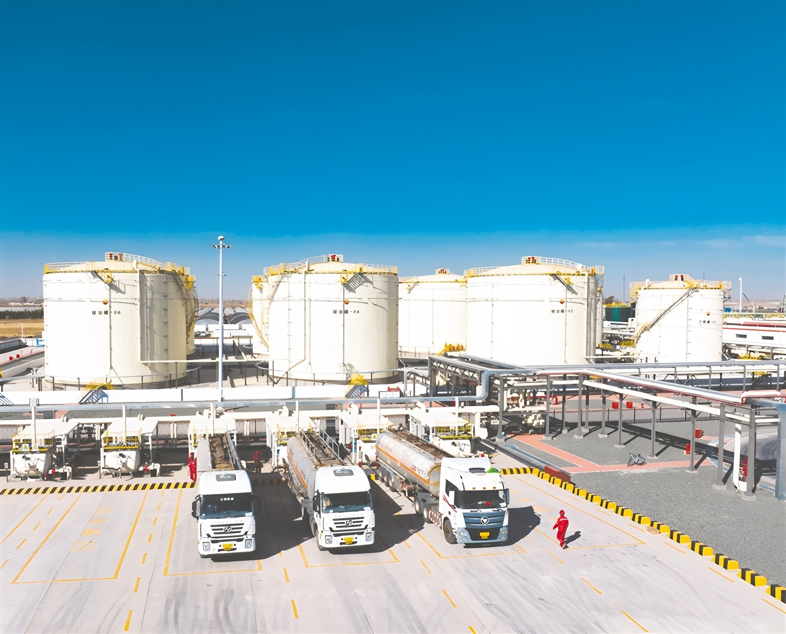 图为:近日巴彦油田联合站装卸油区工人正在进行卸油作业。(薛来 摄)