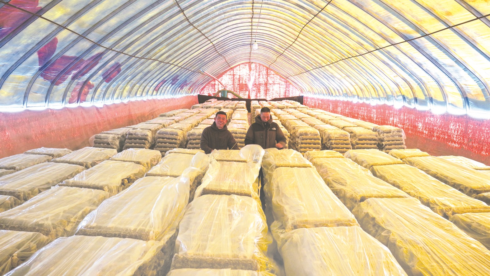 冬季本是北方农业的“淡季”,却成了大明镇食用菌产业的“黄金窗口期”。暖棚内,温控设备将环境稳定在菌丝生长的适宜区间,技术员穿梭在棚室间,指导农户调整通风频次、控制空气湿度,确保菌棒在寒冬里稳步发育。“以前冬天地里没活干,只能在家‘猫冬’,现在守着暖棚管菌棒,一个冬季能挣万把块。”正在检查菌棒的村民笑着说,打破季节壁垒的食用菌产业,让冬日的“闲时光”变成了增收的“黄金档”。