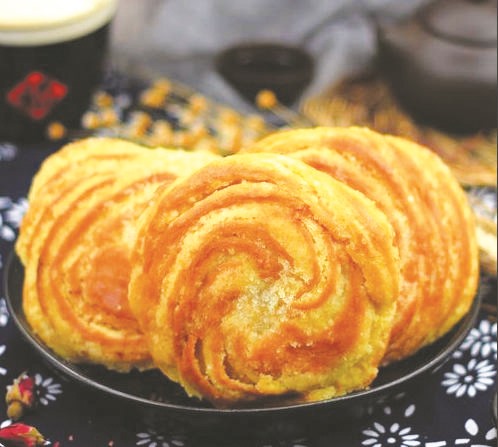 油旋表面呈现一圈一圈螺旋状的纹理,由此得名油旋。至于吃油旋,不必从外到内一口咬透,大口大口地嚼着吃。要一层一层剥着吃,一绺一绺撕着吃。因为一口咬透的吃法太单调,慢慢剥着吃、撕着吃,才有乐趣,一边撕着,一边品尝美味。